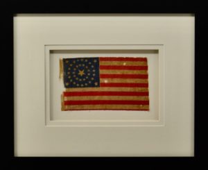37 Star American Flag Antique from 1867. Very rare star arrangement called a medallion that has double wreaths of stars with one in each corner and a large center star that is up side down. Made of starched gauze fabric. Some fading and tatters. In any condition a rare flag. Great antique patriotic Americana