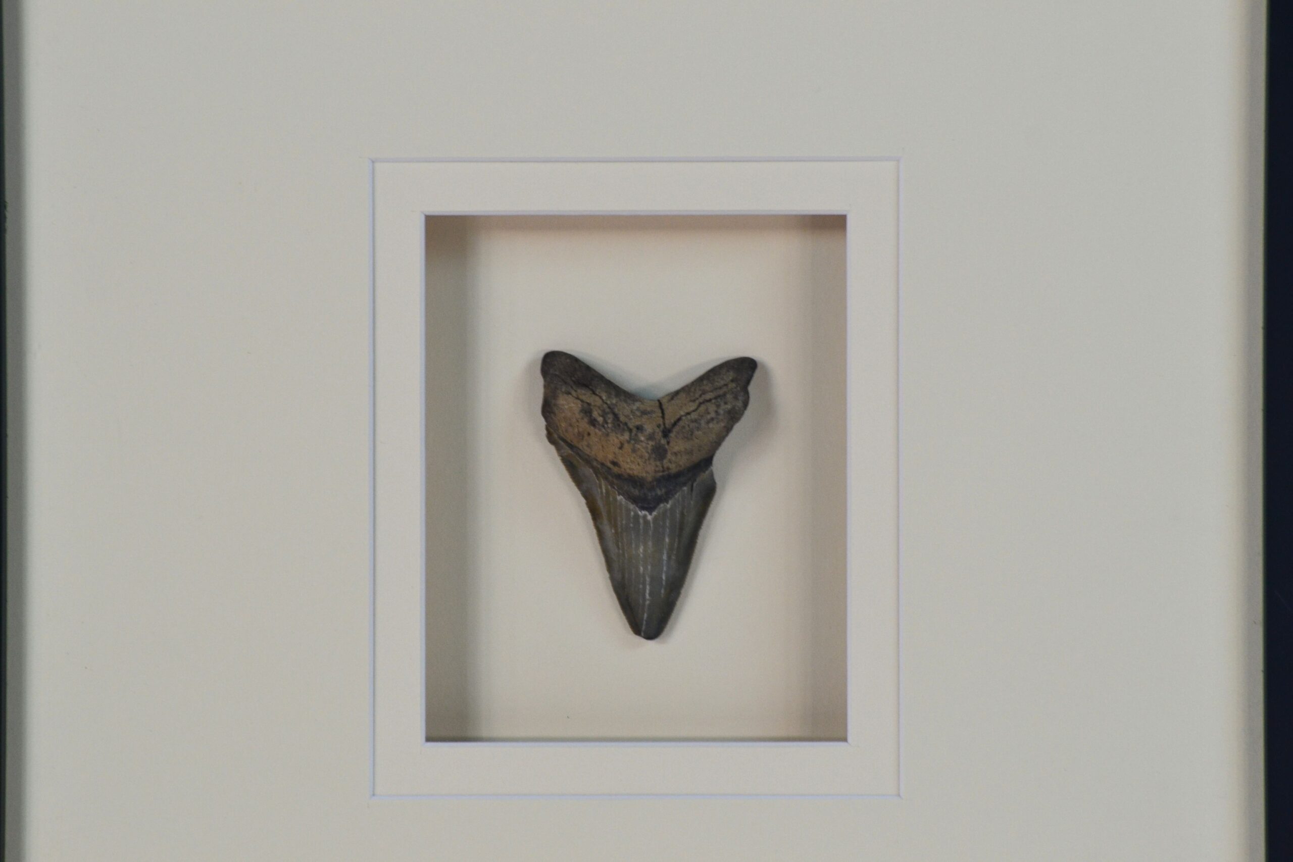 FRAMED ANTIQUE PRE-HISTORIC MEGLADON SHARKS TOOTH