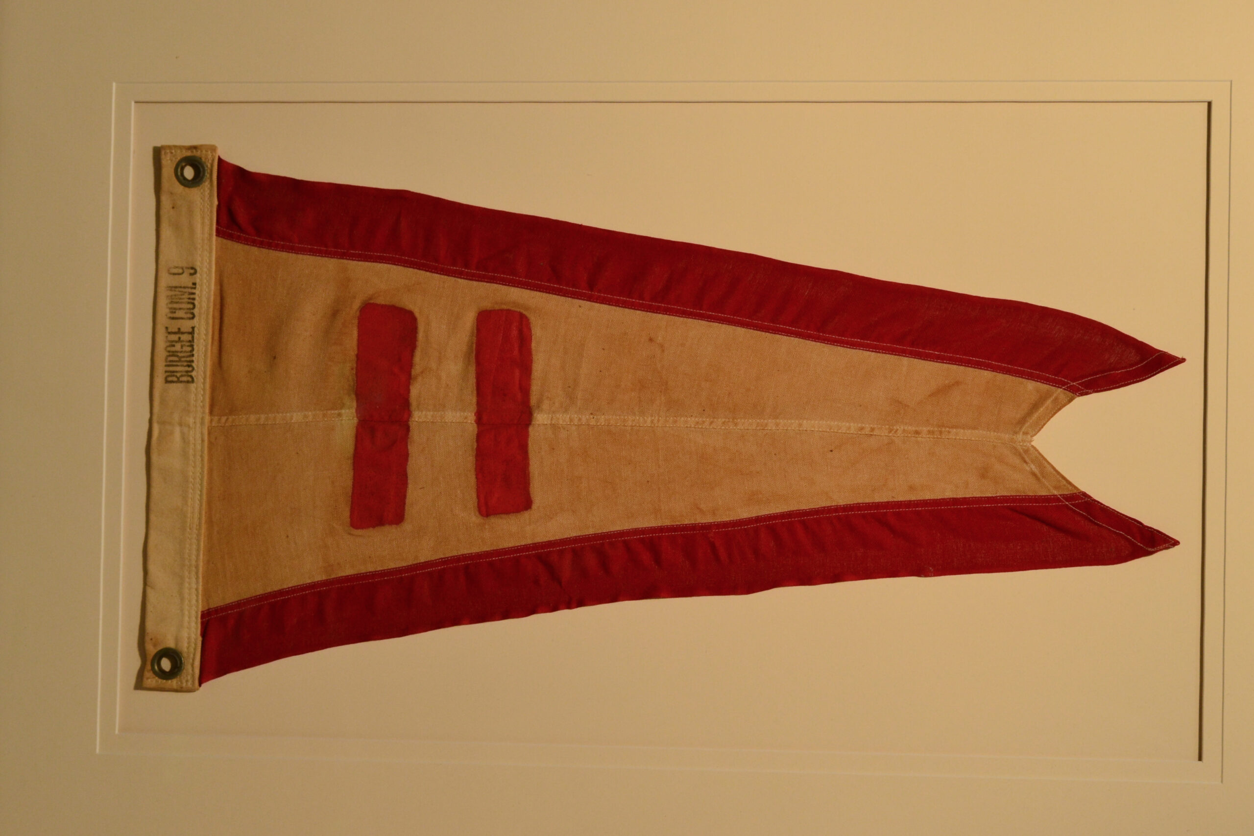 Very rare Antique Yacht Racing Pennant with Swallowtail shape. Treadle sewn with the #11 on both sides. Zinc grommets. Circa 1870-1890 Great for the beach home. Antique pennants like this are almost impossible to find. Beautiful work of art.