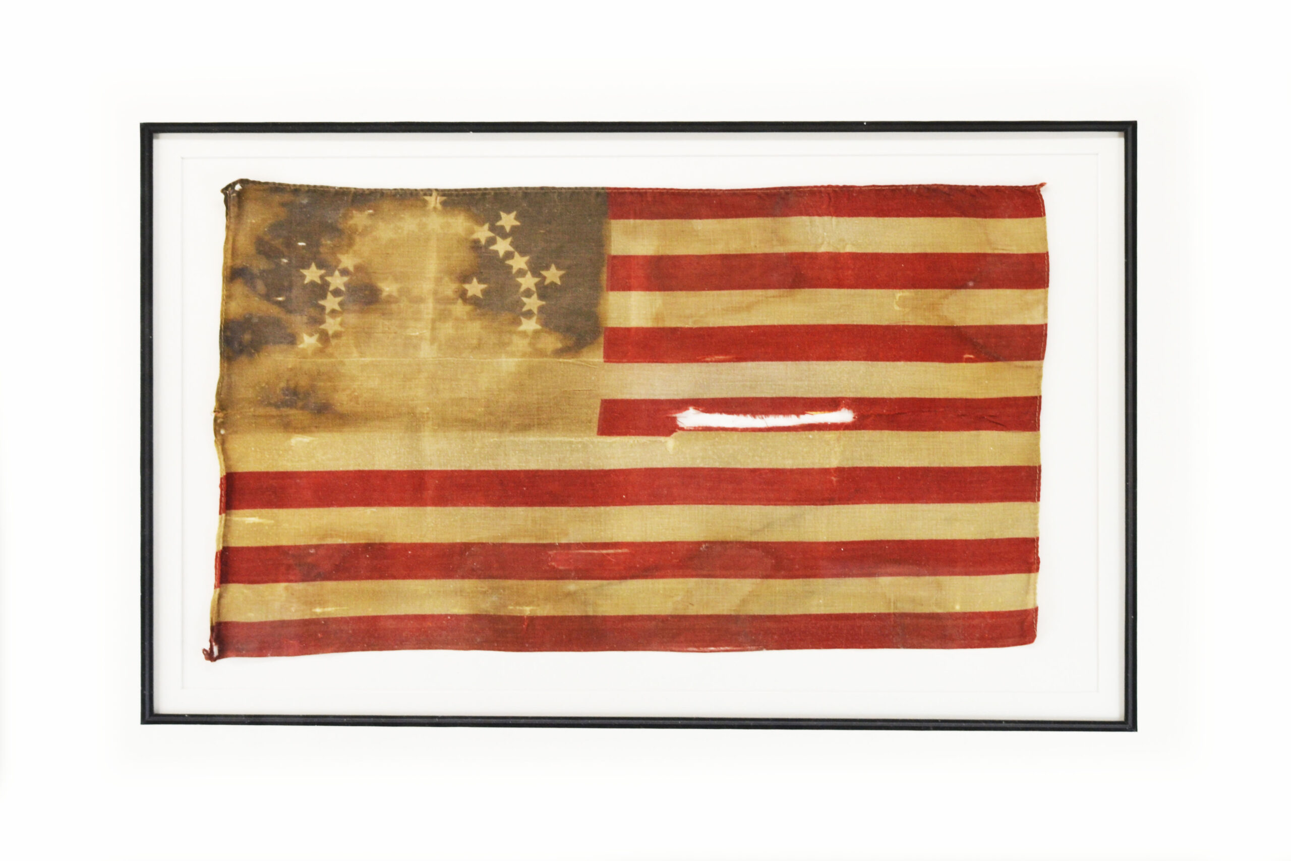 Historical Americana has been buying and selling antique American Flags and Americana for over twenty years. I have personally seen and handled and purchased thousands of antique flags over the years. We frame them with museum conservation framing. Use all wood frames, UV acrylic, cotton rag mat components which means no acid or gas to harm any textile. We do all this and sell our flags at very reasonable prices. !